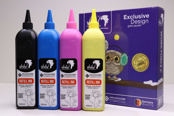 سيت حبر خاص بطابعات EPSON WORKFORCE C (5710 - 5790 - 5290 - 5210) الالوان : احمر - اصفر - ازرق - اسود سعة اللون :500 مل