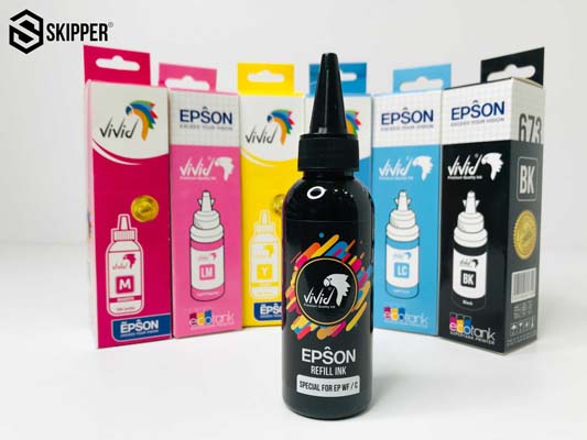 حبر خاص لطابعات EPSON (6)الوان الالوان (احمر - اصفر - ازرق - اسود - احمر لايت - ازرق لايت) السعة: 100 مل نوع الحبر: داي يكفي لطباعة 5000 نسخة (+-) 5%